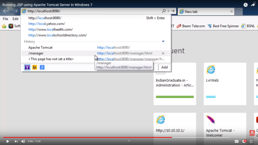 This video tutorial describes the process of running Java Server Pages or JSP programs using Apache Tomcat Server in Windows 7. This video does not describe how to write JSP programs, it only describes the process of running them. When Apache Tomcat Server is installed for the first time it does not contain the tools.jar file in its lib directory. This tools.jar file is needed to internally by the Apache Tomcat Server to compile any JSP file which can then be executed by the user. Please note that the programmer does not compile the JSP Program. The video below demonstrates the process of running Java Server Programs in Apache Tomcat Server in Windows 7.